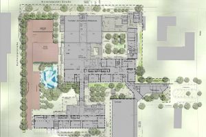 Erweiterung und Sanierung der Mittelschule im Schulkomplex Grund- und Mittelschule in Germering. Neuordnung und Aufwertung der Freiflächen, klimagerechter und klimaresilienter Umbau der Außenräume nach dem Schwammstadt-Konzept.