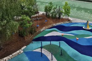 Gute Wachstumsbedingungen für neugepflanzte Bäume durch großzügige, überfahrbare Baumgruben mit Wasserrückhalt haben in der Planung einen hohen Stellenwert. Der Schatten von Baumkronen bietet den besten Hitzeschutz und ermöglicht Schulkindern auch an heißen Tagen einen angenehmen Aufenthalt im Freien.